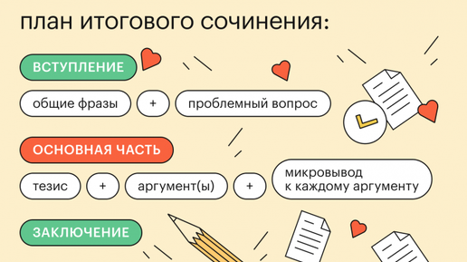 У меня была статья с подробной инструкцией как подготовиться к написанию: https://dzen.ru/a/ZzY2PCWaZDXr7eWJ Также есть удобный список коротких рассказов, с которыми можно быстро ознакомиться и использовать их в качестве аргументов: https://dzen.ru/a/ZlRAYH4_qXGTpaM_ 1. Структура сочинения простая и понятная. Не перегружайте. Делите вашу работу на 4 абзаца: вступление-1 аргумент-2 аргумент-заключение...