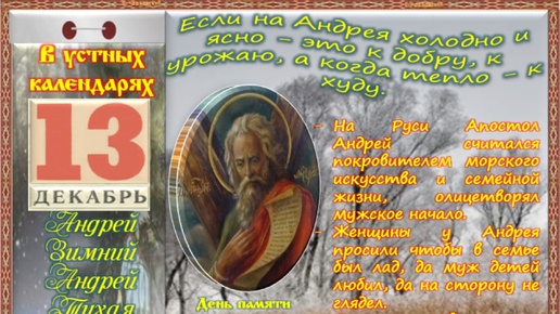 13 декабря - Приметы, обычаи и ритуалы, традиции и поверья дня. Все праздники дня во всех календарях.