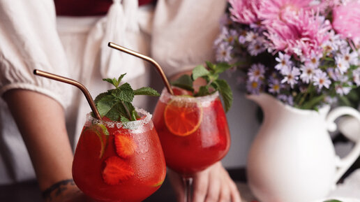 В тексте: Безалкогольный коктейль Бабл Гам с клубникой. Освежающий коктейль со вкусом клубники и жвачки 🥰 Обычно бабл гам добавляют в молочные или алкогольные коктейли и кофе, но кажется, мне удалось вывести ещё одну формулу, которая порадует вас в жаркий день. В мск как раз на несколько дней возвращается пекло 😬 Для украшения бокалов: Вода Сахар Для коктейля на 2 бокала (по 500 мл): Содовая или лимонад «Дюшес»/«Буратино» Сироп «Бабл Гам» 60 мл (шот-полтора) Клубника 300г Лайм Мята Лёд Окунуть ободок чаши бокала в воду, а затем в сахар, дать подсохнуть...