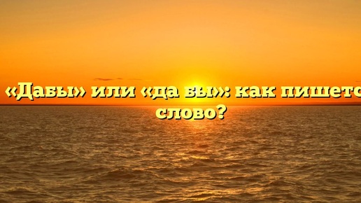 ? «Дабы» или «да бы»: как пишется слово? Одним из вопросов, с которыми сталкиваются многие люди при написании текстов, является корректное написание слова «дабы». Возможно, вы задавались вопросом: должно ли это слово писаться раздельно «да бы» или же совмещено в одно слово «дабы»? Ответ на этот вопрос достаточно прост: слово «дабы» пишется через букву «б» соединительным знаком «ы», то есть в одно слово и без пробелов. Значение этого слова заключается в том, что оно указывает на цель или причину действия, которое описывается в предложении...
