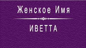 Женское имя Иветта по происхождению древнегерманское. Было образовано от древнегерманского слова «Иво», имеющего трактовку «тисовое дерево» или «тис». Также может служить краткой формой имен с корнем «iv». Среди русскоговорящего населения спросом не пользуется, хотя обладает довольно неплохой совместимостью со многими мужскими русскими именами. Сильная энергетика имени наделяет носительницу множеством хороших качеств...