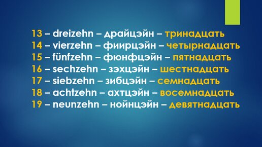 Цифры на немецком от 1 до 100, от 100 до 1000 и далее