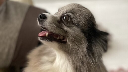 На передержке Сьюзи очень быстро нашла общий язык с кошкой и шпице-подружкой. Шайка уже выработала стратегию по поеданию снеди с хозяйского стола: кошка забирается на стол и скидывает вкусняшки мохнатым подельникам.