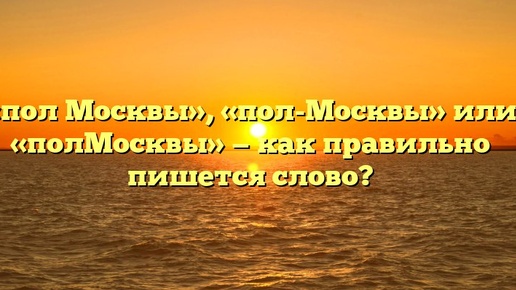 «пол Москвы», «пол-Москвы» или «полМосквы» — как правильно пишется слово? Сказать «пол-Москвы» (то есть половина) без труда может любой, а вот правильно написать это словосочетание – куда более сложная задача для многих. Вспоминаем, какой вариант будет верным – «пол Москвы», «пол-Москвы» или «полМосквы»? Как пишется правильно: «пол Москвы», «пол-Москвы» или «полМосквы»? Запомните, что единственный правильный способ написания этого выражения – с дефисом: «пол-Москвы». Какое правило Принципы, регламентирующие написание приставки «пол» в значении «половина» с другими словами, однозначны. Отдельно эта приставка не пишется никогда...