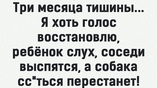 Урок в школе. Учительница спрашивает детей, кем были их предки на войне: – Машенька, а у тебя дедушка воевал? – Да, Марь Иванна. Он был танкистом. … – А у тебя, Вовочка, кем дедушка был на войне? – Наверное, электриком. – ???? – Да я каску его нашел. Там две молнии нарисовано… Мальчик приходит из школы, подходит к своему отцу, новому русскому по профессии, и говорит: – Папа, можно тебя на пару слов? – Только коротко и быстро! – 100 баксов. Встречаются две подруги: – Ну что, как твой парень? Все еще занимается математикой? – Да я вообще не хочу о нем больше слышать...