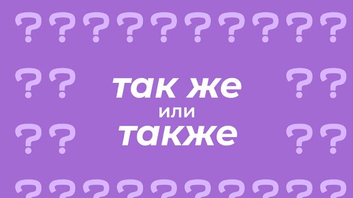 Правила русского языка достаточно подробно объясняют, как пишется это слово в разных ситуациях — слитно ("также") или раздельно ("так же"). Так же или также: как пишется правильно Оба варианта считаются правильными, но их используют в разных ситуациях. Чтобы понять, как именно пишется “так же” в конкретном случае, вместе или раздельно”, нужно определить часть речи. В русском языке есть производные союзы, которые возникают в результате объединения различных частей речи. Такие сочетания слов и союзов,...