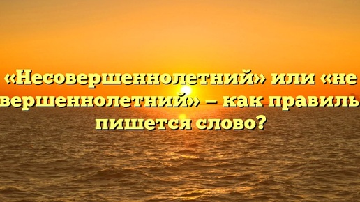 «Несовершеннолетний» или «не совершеннолетний» — как правильно пишется слово? В этой статье предлагаем вспомнить, как пишется слово – «несовершеннолетний» или «не совершеннолетний»? Как пишется правильно: «несовершеннолетний» или «не совершеннолетний»? Для начала запомните, что данное слово нужно писать слитно – «несовершеннолетний». Однако есть один случай, когда требуется раздельное написание. Какое правило Если имеется в виду, что человек ещё не достиг совершеннолетия, то есть это прямо констатируется, требуется слитное написание...