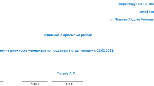 Как писать заявление о приеме на работу - образец (2017-2018)?