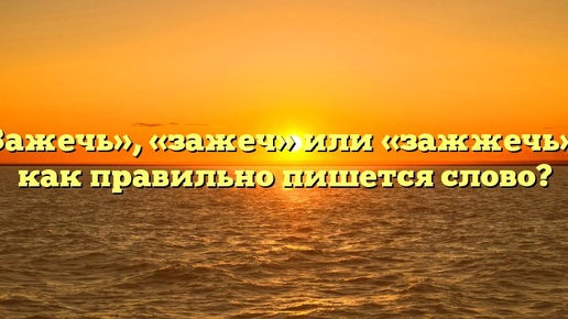«Зажечь», «зажеч» или «зажжечь» — как правильно пишется слово? Слово употребляется довольно часто в устной речи, а его правописание вызывает трудности. Не знаете, как написать: «зажечь», «зажеч» или «зажжечь». Давайте подумаем вместе. Как пишется правильно: «зажечь», «зажеч» или «зажжечь»? Исследуемое слово является глаголом в неопределенной форме, который употребляется в значении «заставить загореться, засветиться». В переносном смысле используется для обозначения следующих действий: «заставить сверкать и блестеть», «пробудить чувства, воодушевить»...
