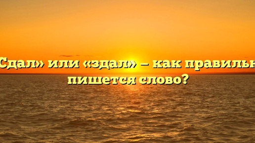 «Сдал» или «здал» — как правильно пишется слово? Если сомневаетесь, как правильно – «сдал» или «здал», необходимо вспомнить правописание исконно русских приставок. Давайте вспомним это правило и определим, какой префикс написать в данном слове. Как пишется правильно: «сдал» или «здал»? В соответствии с правилом орфографии, пишется – сдал. Какое правило применяется? Слово «сдал» – форма 3-го л. ед. ч. прош. вр. глагола «сдать». Употребляется в значении «что-либо отдать, уступить, потерять влияние, силу и прочее»...