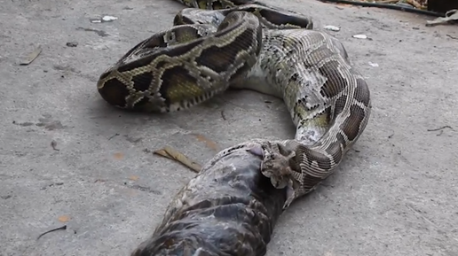Питон забрался в клетку, и от жадности проглотил двух кроликов, одного ему было мало...