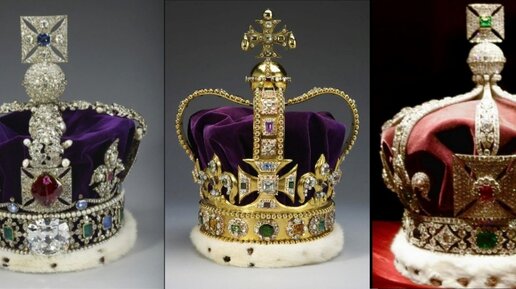 а) Есть коронационные короны (для коронаций) б) Короны империи (по менее торжественным случаям, например, королевский спешл в палате Лордов). Достаточно знать о 2 коронах, которые задействуют и сегодня: 1. Главная - золотая корона Св. Эдуарда Исповедника. Выковали в 1660 году, на ней камней – 444 шт. – и ещё есть мех. Не было бы бархатной подушечки и дуг - была бы брутальная средневековая корона. Весит больше 2 кг. Вот эту самую корону обычно выбирают, чтобы изобразить на очередной версии герба UK...