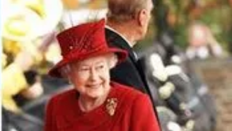 English. Как по-английски будет "на фото Королева Елизавета II в платье в цветочек, с тросточкой, очками в руках и сумкой любимого бренда"