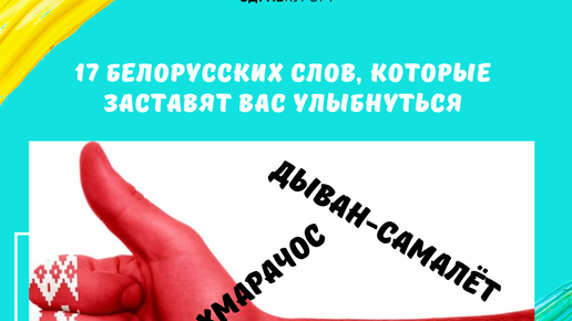 Здравкурорт Санатории Белоруссии856 читали · 5 лет назадПодписаться17 белорусских слов, которые поднимут настроениеПопробуйте их хотя бы прочитать: хмарачос - небоскреб тварына — зверь Страхар-бляхар - кровельщик-жестянщик