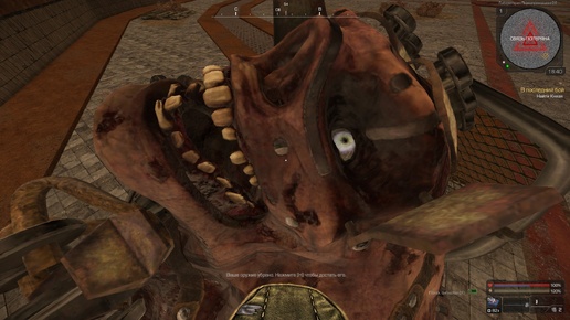 Для прохождения я воспользовался самой эффективной тактикой. Она гласит так: "нету рук, бери ауг". Да-да-да, так оно и есть) Снаряжение было примерно такое: Рассмотрим строение арены, она состоит из малого и большого круга, они разделены вентиляцией. Это знание нам потребуется позже. Для начала расскажу, что может данные объект (Страж). Ну вообще он достаточно простой и имеет всего 3 паттерна атаки. 1) Дальнобойная атака - Страж атакует электрическим лучом вслед за игроком. 2) Таран - Страж бежит по автонаводке в игрока) 3) Электрическое поле - Страж наносит урон вокруг себя...