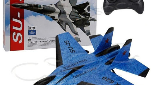 Детский самолет на радиоуправлении. Простая в использовании и управлении модель. Нравится как взрослым, так и детям! Подготовка к работе очень простая. Нужно зарядить аккумулятор, вставить передние и задние шасси и закрепить мягкий наконечник на носике. После зарядки аккумулятора необходимо поместить его в соответствующий отсек и включить питание самолета. Вставить элементы питания в пульт управления и нажать на нем кнопку включения. Затем левый рычаг перевести в крайнее верхнее, потом в крайнее нижнее положения и вернуть вверх...