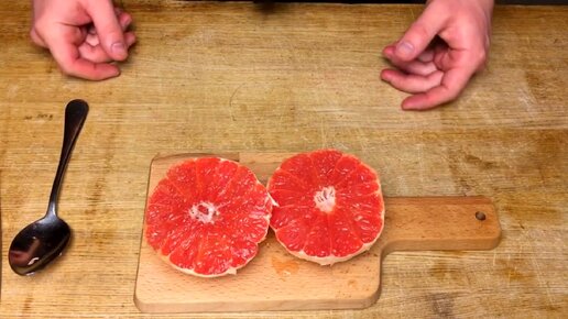 Небольшой лайфхак, как очистить грейпфрут от кожуры за одну минуту! Для начала разрезаем кожуру по кругу грейпфрута. Затем берем столовую ложку, и пропихиваем ее под кожуру, как показано на фото ниже. После чего начинаем проворачивать грейпфрут, отделяя мякоть от кожуры при помощи ложки...