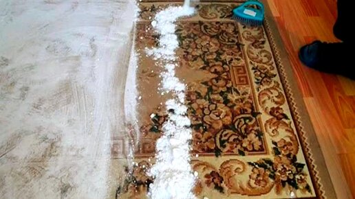 Пожалуй, это самый лучший способ чистки ковра, который только может быть. Самое главное, что его не надо снимать с пола и стирать, что очень удобно в городской квартире и когда ковер большой. Вода нам вообще не понадобится. Итак, рассказываю, как почистить ковер от пятен и грязи в домашних условиях без стирки: понадобится всего 2 ингредиента, которые есть абсолютно в каждом доме. Берем пищевую соду и мелкую соль (экстра) в равных пропорциях. Смешиваем и посыпаем равномерно на ковер. Затем берем щетку и начинаем чистить ковер круговыми движениями, как бы втирая соль и соду в ковер...