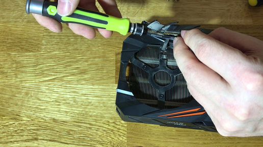 Рассмотрим, что можно сделать если вентилятор видеокарты туго вращается либо вовсе не работает. Первый вариант. Если вентилятор туго-вращается. Его можно попробовать смазать. На ряде видеокарт, чтобы до него добраться придётся разобрать ее практически всю. Если у вентилятора сняв с задней стороны наклейку имеется защитный колпачок то можно смазать ось вентилятора без особых трудностей. При отсутствии такой возможности можно аккуратно отделить нижнюю часть вентилятора отделить от крыльчатка. При...