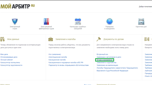 Как подать возражения на отзыв через Мой арбитр