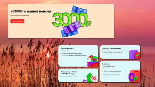 Альфа-Банк дает 3000 рублей за перевод пенсии плюс деньги на лекарства, нужно успеть подать заявление до конца сентября