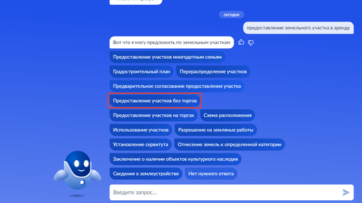 Заявление на предоставление земельного участка в аренду без торгов Алгоритм подачи заявления через ГОС услуги 1. На гос услугах у робота МАКСА спрашиваете: «Предоставление земельного участка без торгов» 2. Выбираете найденную услугу 3. Нажимаете начать Обратите внимание, что срок предоставления услуги 14 дней. 4. Так как, мы хотим получить земельный участок в аренду, то выбираем «Предоставление земельного участка в аренду» 5. Далее «Заявитель» 6. Далее встает выбор: есть ли предварительное согласование предоставления участка, либо его нет...