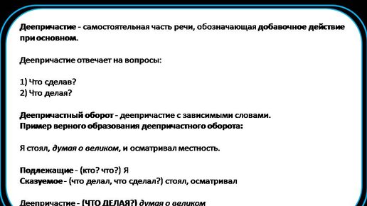 Что такое деепричастие и деепричастный оборот? Как построить деепричастный оборот?