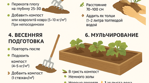 Кабачки — один из самых неприхотливых и благодарных овощей на грядке. Они быстро растут, дают обильный урожай и не требуют сложного ухода. Но всё начинается с правильной подготовки почвы. Именно от неё зависит здоровье растений, их устойчивость к болезням и количество плодов. 1. Выбор подходящего места Для кабачков подбирают: Не рекомендуется сажать кабачки: 2. Анализ и коррекция состава почвы Кабачки лучше всего растут на: Что делать, если: 3. Осенняя обработка (при возможности) Осенью можно заложить основу плодородия: 4...