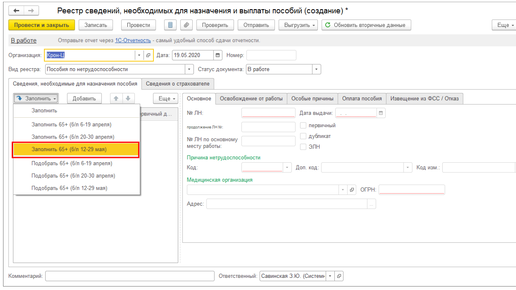 Добрый день, в этой статье я покажу как при помощи расширения можно сформировать реестр сотрудников 65+ в 1С. Реализована возможность отправки реестров прямых выплат пособий ФСС в соответствии с Постановлением Правительства РФ от 01.04.2020 № 402, от 16.04.2020 № 517 и от 15.05.2020 № 683 (также см. информацию на сайте ФСС: про реестр с 6 по 19 апреля, с 20 по 30 апреля и c 12 по