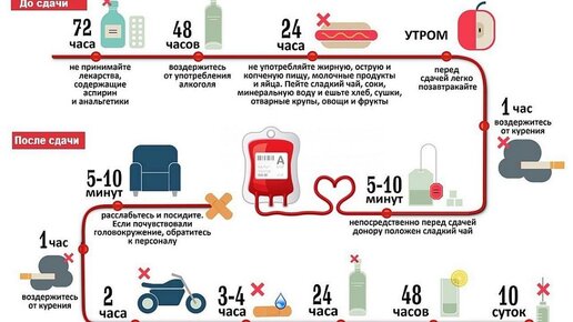 Приходить на сдачу крови необходимо уже подготовленным, поэтому мы составили памятку для доноров, которая позволит вам пройти эту процедуру более комфортно и принести людям больше пользы. Однако, перед сдачей крови у вас, безусловно, возьмут все необходимые медицинские анализы и определят группу крови, резус, уровень гемоглобина, СОЭ и другие показатели. Кроме того, вас осмотрит врач-трансфузиолог и оценит не только общее состояние здоровья, но даже психоневрологический статус донора...