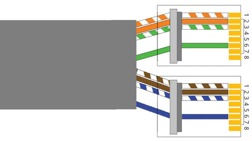 В нашу непростую эпоху повсеместной удаленки "потребителей" интернета в домах становится больше. Бывает, что свободные порты в коммутаторе еще остались, но новые провода тащить, ну, очень лень. Если хочется с наименьшими усилиями подключить два устройства по одному сетевому кабелю, можно "расщепить" стандартный Cat. 5 кабель. В кабеле Cat.5 (а также в Cat. 5e и Cat. 6), как известно, четыре пары проводников, а для подключения по 100Base-T достаточно всего двух пар. Подключим одно устройство по двум парам и второе - по двум оставшимся...
