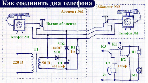 Как подключить 2 стационарных, домашних телефона между собой для создания двухсторонней связи, схема и объяснение ее работы