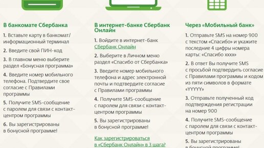 Спасибо от Сбербанка можно подключить через мобильный банк по СМС, через Сбербанк Онлайн или банкомат. В статье вы найдете подробную пошаговую инструкцию по подключению услуги для вашей карты. Благодаря бонусной программе лояльности Спасибо от Сбербанка покупатели могут приобретать покупки с максимальной для себя выгодой. Чтобы зарабатывать и обменивать баллы, нужно проводить безналичную оплату за товары в магазинах партнерской сети. Оплачивая товары и услуги с помощью карт Сбербанка с привязкой...