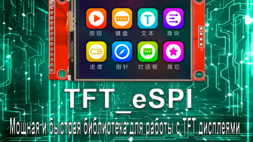 Библиотека TFT_eSPI предназначена для работы с TFT-дисплеями через SPI интерфейс. Одной из главных особенностей является ее быстродействие. Это особенно важно для устройств, которые должны быстро реагировать на пользовательский ввод. Библиотека поддерживает множество различных TFT-дисплеев, включая такие модели, как ST7735, ILI9341, ILI9163 и др. Это означает, что она может быть использована для работы с большим количеством различных устройств, что делает ее более универсальной и удобной для использования...