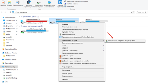 Надо зайти в <<этот компьютер>> затем нужно выбрать диск, нажать на правую кнопку мышке и выбрать пункт <<предоставить доступ>> <<расширенная настройка общего доступа...>> Затем в открывшемся окне нажать на кнопку <<расширенная настройка...>>, поставить галочку и нажать ок и применить. Настройка сетевого диска Сначала зайдите в <<свойства>> сетевого диска, переедите в раздел <<безопасность>>, А потом нажмите на кнопку <<дополнительно>>...