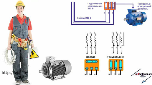 Как подключить двигатель 380 на 220