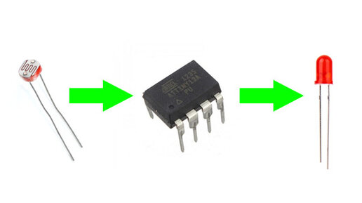 В этой статье мы познакомимся с принципом работы фоторезистора и будем передавать изменяемое им значение в аналоговый порт ATtiny13, обрабатывать и выдавать нужный нам результат в цифровой порт. А именно, включать и выключать светодиод в зависимости от степени освещенности...