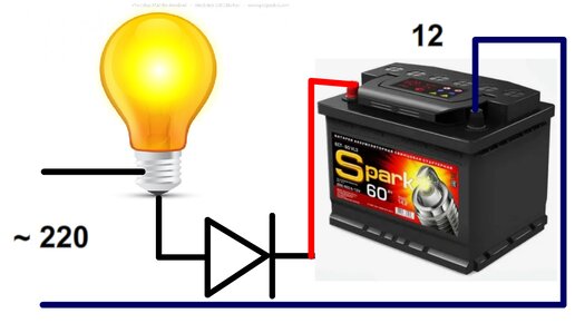 Как заряжается аккумулятор через ЛАМПОЧКУ и Диод ? Ликбез для Александров Электриков =)
