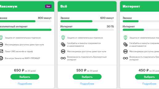 В некоторых регионах России Мегафон ввёл новую опцию под названием «Безлимитный интернет без переплат», которая за дополнительную плату позволяет подключить безлимитный интернет на некоторые тарифы.