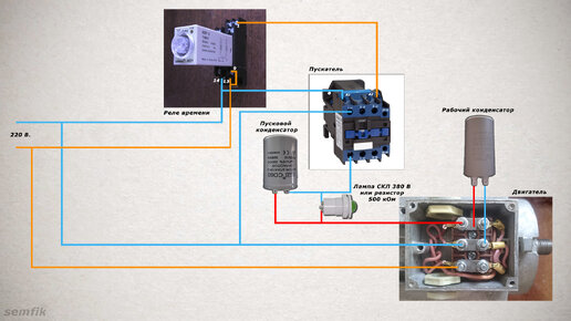 Чтоб каждый раз не подключать пусковой конденсатор для старта электродвигателя, можно собрать простую схему на реле времени, которая будет делать это автоматически. Это актуально для систем, где приходится часто запускать моторы с помощью пускового конденсатора. Понадобится два устройства: реле времени и пускатель. Многое спрашивают, а можно сделать без пускателя? В большинстве своем контакты реле времени и подобных устройств не рассчитаны на коммутацию серьёзной нагрузки как электродвигатель....
