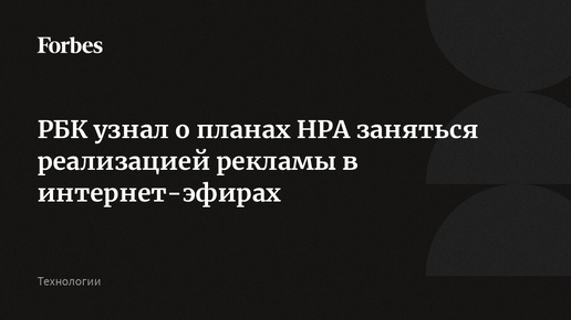 РБК узнал о планах НРА заняться реализацией рекламы в интернет-эфирах