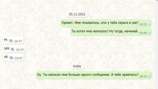 Здравствуйте, мои дорогие читатели. Вчера я придумала еще одно развлечение с сайтом знакомств. Если забить в поисковик: "Как подкатить к парню?" выйдет целый список фраз. И мне стало интересно, как реальные парни на сайте знакомств отнесутся к таким "подкатам". И что из этого вышло. Здесь фраза из подкатов это: "Ты хотел мне написать? Ну тогда, начинай.". На своей страничке он написал что-то вроде: "Один раз я могу написать любой...