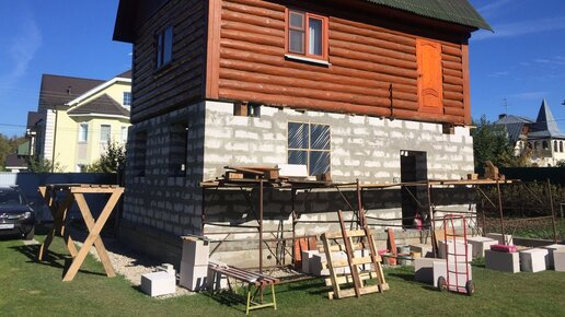 Решили увеличить площадь дома, не затронув площадь участка. Итог, вдвоем за 2,5 месяца подняли дом на 2 домкратах на уровень этажа, вес дома около 15-18 тонн. Все возможно при желании)