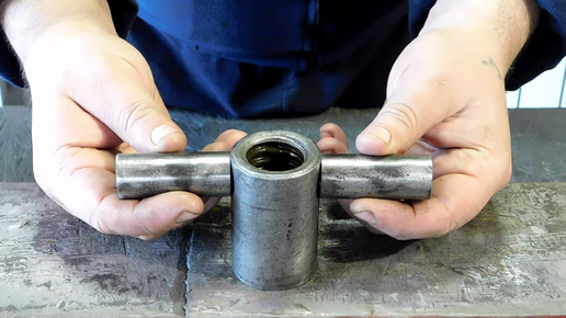 Сегодня я поделюсь с Вами очень полезной идеей, как из подручных материалов быстро и просто сделать мощный винтовой домкрат. Пожалуй, очень важное качество домкрата, сделанного своими руками, - это обеспечение должного уровня безопасности. Надежность - важнейшее качество подъемного механизма. А чем он проще устроен, тем лучше работает. Итак, начнем... Заготовими детали. Отрежем три отрезка труб разного диаметра. Зачистим срезы. Вот такие три отрезка труб нам понадобятся. Самый короткий отрезок трубы с винтовой резьбой...