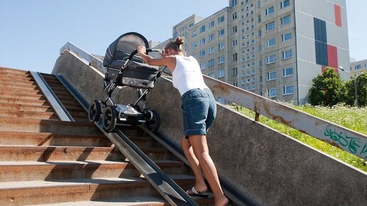 Как спустить и поднять коляску по лестнице