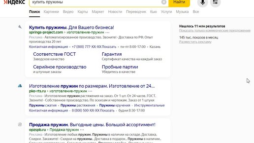 Поисковый запрос – слово или словосочетание, которое вводит пользователь в поисковой строке. Ключевые фразы - слова или словосочетания, которые добавлены в рекламную кампанию Директа. Если ключевые фразы, добавленные в рекламную кампанию, целиком присутствуют в в поисковом запросе пользователя, может произойти показ объявления. Пример: Поисковый запрос - "купить пружины", введен в строке поиска. Объявление может быть показано по ключевым фразам: Объявление не будет показано по ключевым фразам: Как подобрать ключевые фразы для рекламы в Яндекс...