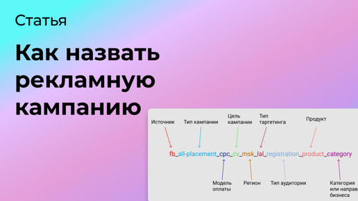 Когда мы создаём рекламную кампанию, в её названии нужно учесть ряд параметров, который в дальнейшем позволит строить различные срезы в аналитических отчётах — это важно для того, чтобы в дальнейшем можно было достаточно быстро и легко построить аналитику. В статье расскажу, как назвать рекламную кампанию и разберу каждый из элементов нейминга, который использую. Больше полезных материалов можно найти в моём блоге. В нём я регулярно делюсь бесплатными шаблонами и инструкциями, которые существенно облегчают жизнь маркетолога...