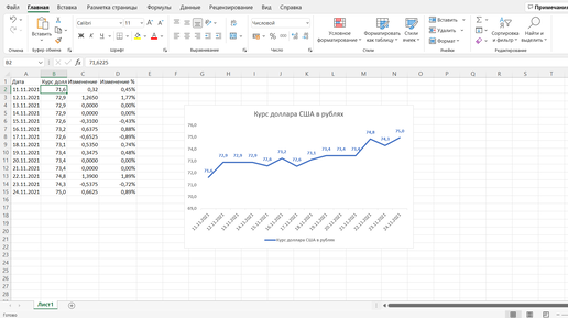 Это первая статья из большого курса по Excel. Здесь мы с вами построим график в Excel по шагам. Текст ориентирован на новичков, первый раз в жизни видящих Excel, так что всё будет максимально просто и понятно. Итак, начнём! Важно! После каждого действия сохраняйте документ. Это делает сочетание клавиш Ctrl S. Я буду напоминать об этом :) Исходный файл Пусть у вас есть изначальный файл. Я взял первую попавшуюся информацию — курс доллара за небольшой промежуток времени. Наша цель — сделать график для вставки, например, в презентацию...