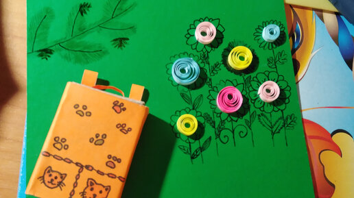 Сегодня я решила рассказать, как можно сделать открытку учителю ко дню рождения. Основу я выбрала зеленого цвета, так как подарок предназначен моей учительнице биологии. В открытку будет много разных элементов. А начнем мы с рюкзачка. Да, про его изготовление я уже рассказывала два раза - в статье про открытку ко дню учителя и для игрушек с Софией Прекрасной, поэтому если уже знаете, как его делать - можете пропустить, а если нет, то заходите. Нам понадобится спичечный коробок. Обклеиваем его цветной бумагой со всех сторон...