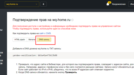Через HTML-файл Я столкнулась с тем, что Pinterest или Yandex.Вебмастер просили подтвердить права на сайт. Для этого нужно вставить код в заголовок head. По поисковым запросам я находила статьи, в которых мне ничего не было понятно. Мой сайт на WordPress. Где находится файл, куда нужно вставить код, непонятно. Но все оказалось просто. Очередность такая: Готово! Через DNS-запись Выбираем DNS-запись и там будет написано Добавьте в DNS домена wq-home.ru TXT-запись. Добавляем DNS-запись для доменов на Beget 1...